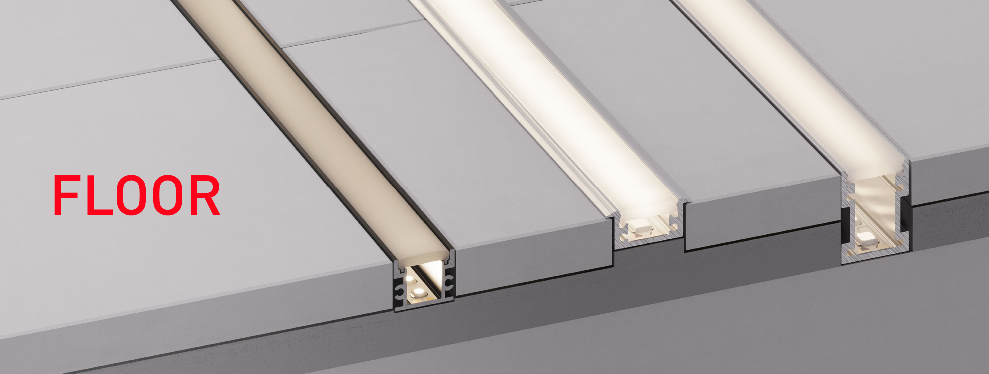 Профили серии "FLOOR" - это современное решение для создания стильных световых линий на полу и зонирования пространства.