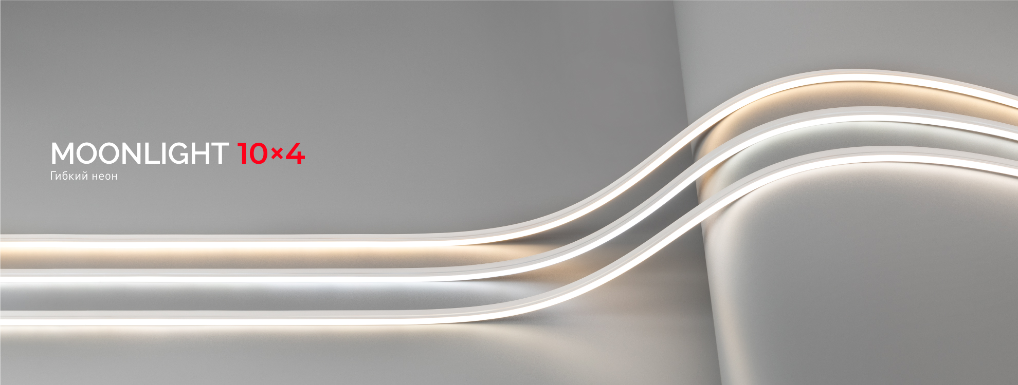 Миниатюрный гибкий неон MOONLIGHT с сечением всего 4×10 мм — отличное решение для изящной подсветки мебели, в том числе и во влажных помещениях, а также декоративного освещения.