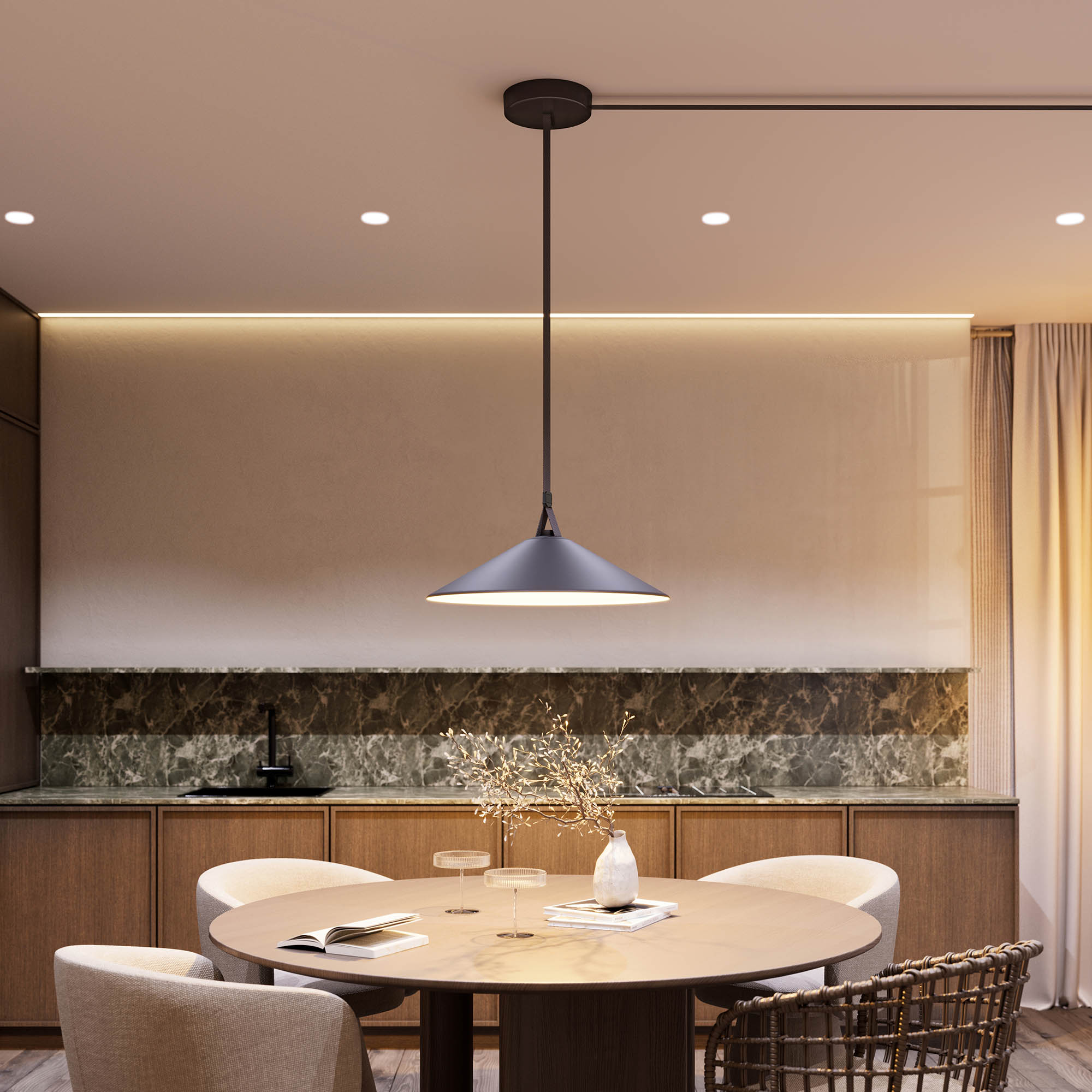 Накладной интерьерный светодиодный светильник ART-INBELT-WOK-R580-20W Day4000-MIX (BK, 110 deg, 48V, DALI) мощностью 20 Вт для системы серии INBELT. Изменяемая цветовая температура от 2700 до 6500 К. Высокий индекс цветопередачи CRI>92 и пульсация менее 5% гарантируют качественное освещение, комфортное для глаз, и обеспечивает точное восприятие цветов и отсутствие мерцания. Конусообразный корпус, размером 580*160 мм. Монтаж выполняется на гибкий трек-ремень. Разнообразие аксессуаров позволяет выбирать точки крепления системы на любой поверхности (пол/потолок/стена). Широкий угол излучения 110° позволяет создавать мягкое равномерное освещение.  Управление разными сценариями, яркостью и цветовой температурой от теплого до холодного оттенка возможно с помощью протокола управления DALI. Низкое напряжение питания системы 48В безопасно в эксплуатации. Драйвер для подключения 48В поставляется отдельно.