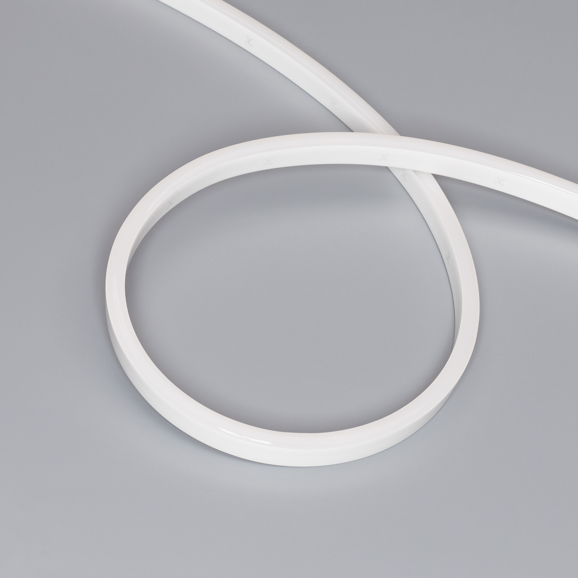 Гибкая герметичная лента (неон серии WAVE), сечение 06×12 мм. Светодиоды SMD2835 120 шт/м. Цвет свечения БЕЛЫЙ (5700 K), индекс цветопередачи CRI>90, световой поток 388 лм/м, угол излучения 125°. Мощность 8 Вт/м, питание 24 В. Оболочка из Полиуретана (PU). Класс пылевлагозащиты IP68. Размеры 1000×06×12 мм. Не подлежит резке. Горизонтальный изгиб SIDE, минимальный радиус изгиба 30 мм. Катушка 1 м. Цена за 1 м. Гарантия 3 года.