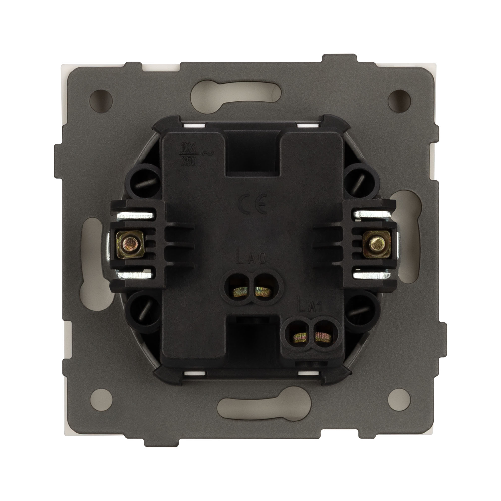 Механизм выключателя света клавишный на 1 пост 1 клавиша (непроходной). Цвет - белый. Без фронтальной рамки. Уровень пылевлагозащиты IP20. Выключатель устанавливается в стандартный подрозетник круглого сечения диаметром 60мм.