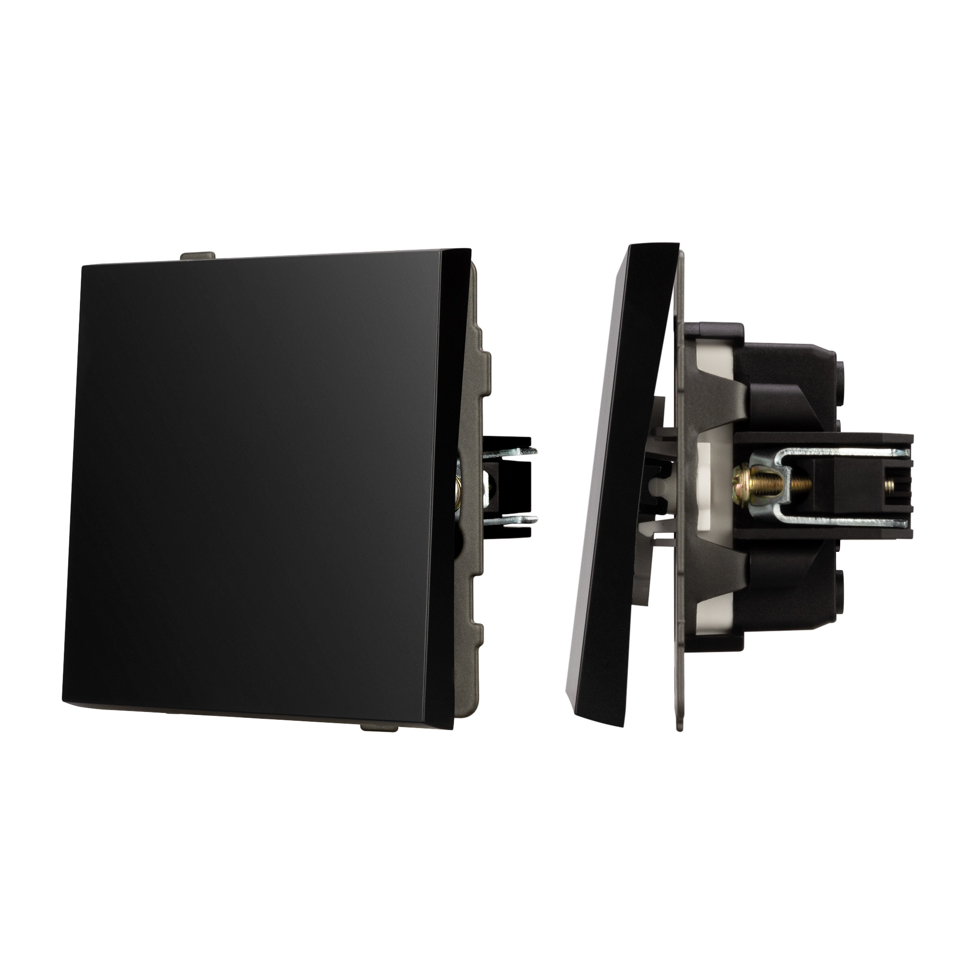 Механизм выключателя света клавишный на 1 пост 1 клавиша (перекрестный). Цвет - черный. Без фронтальной рамки. Уровень пылевлагозащиты IP20. Выключатель устанавливается в стандартный подрозетник круглого сечения диаметром 60мм.