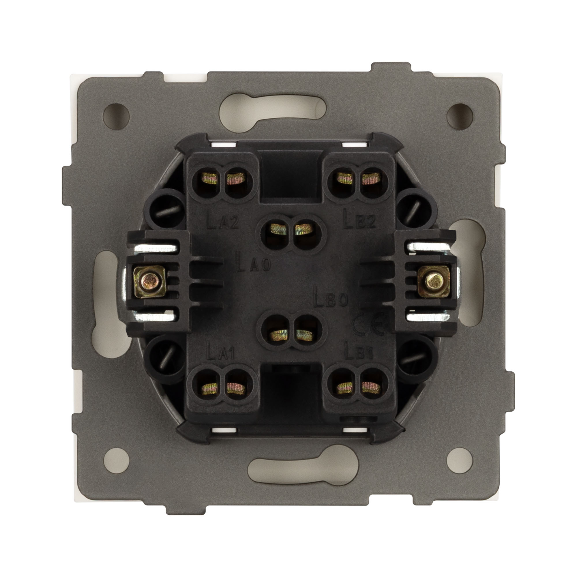 Механизм выключателя света клавишный на 1 пост 1 клавиша (перекрестный). Цвет - золотой. Без фронтальной рамки. Уровень пылевлагозащиты IP20. Выключатель устанавливается в стандартный подрозетник круглого сечения диаметром 60мм.