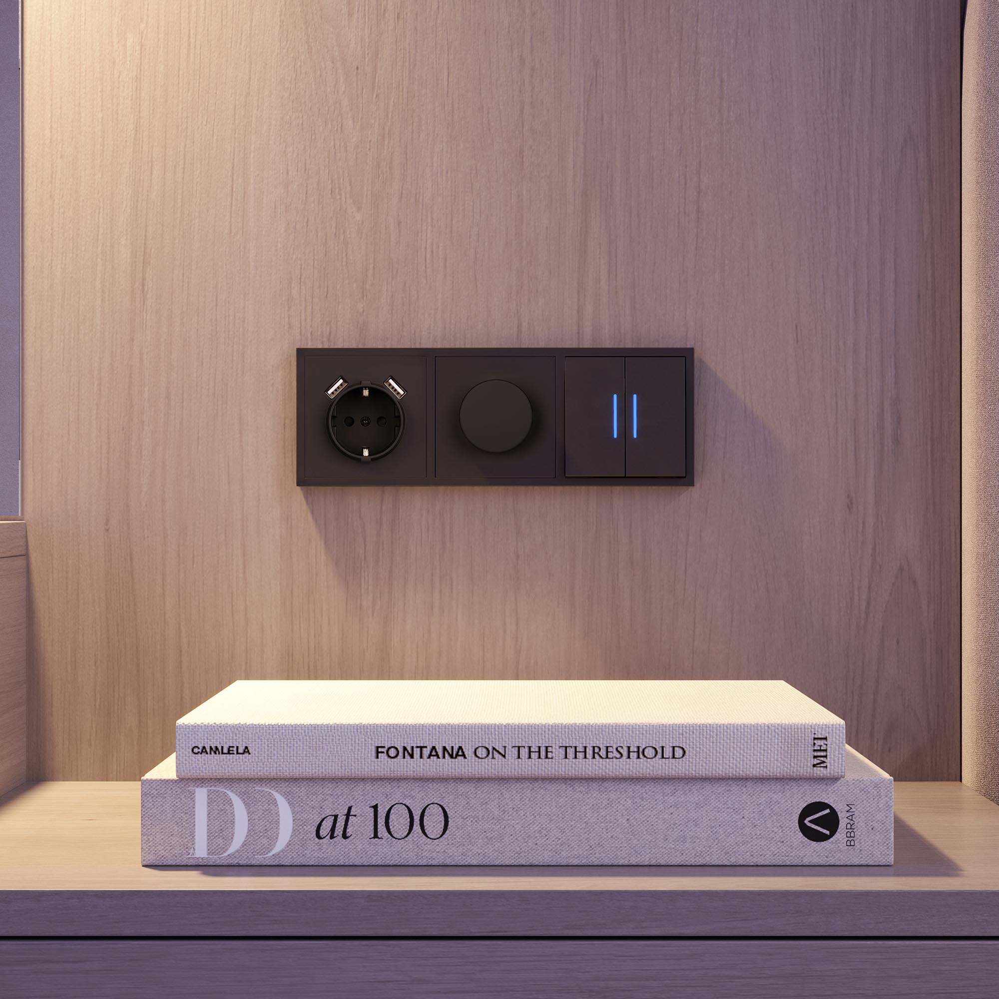 Корпус рамки выполнен в цвете черный оникс и имеет покрытие Soft-Touch, что придает изделию приятные тактильные свойства. Толщина корпуса составляет 8,5 мм, что позволяет эффективно интегрировать рамку в интерьерные решения любого уровня сложности.