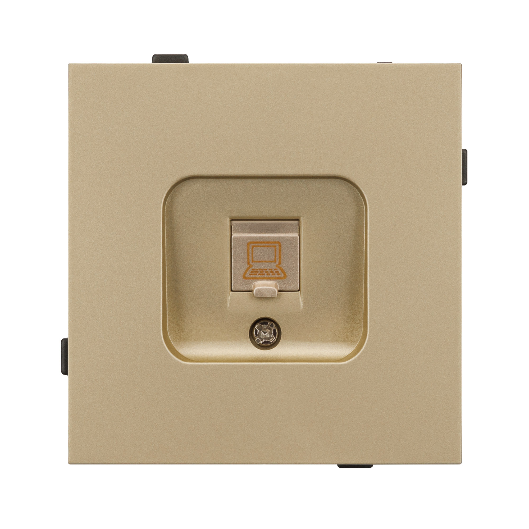 Механизм компьютерной розетки на 1 пост 6-й категории. Цвет - золотой, с Soft-Touch покрытием. Без фронтальной рамки. Уровень пылевлагозащиты IP20. Розетка устанавливается в стандартный подрозетник круглого сечения диаметром 60мм. Габаритные размеры: длина 71 мм, ширина 71 мм, высота 42 мм. Гарантийный срок 10 лет.