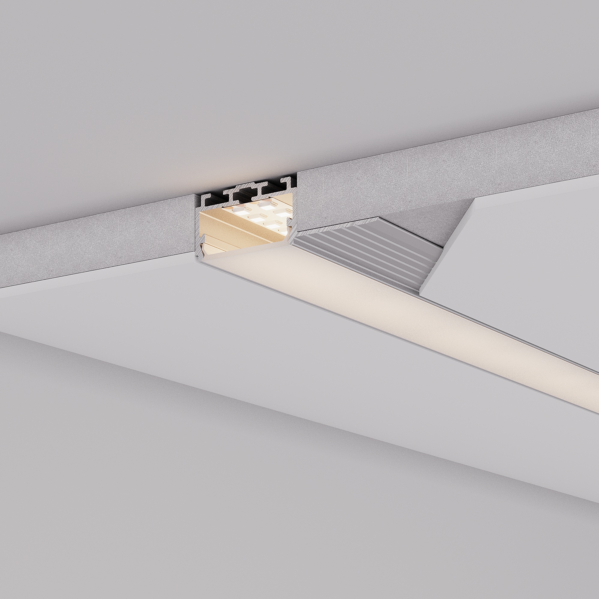 Встраиваемый профиль со скрытым фланцем под строительную отделку из алюминия для установки в гипсокартон толщиной 12,5 мм для основного освещения и контурной подсветки. Габаритные размеры профиля составляют 2000 мм в длину, 66,2 мм в ширину и 15 мм в высоту. Площадка для установки светодиодных лент позволяет использовать ленту шириной до 24 мм и мощностью до 19,2 Вт/м. Это обеспечивает гибкость в выборе светодиодных лент и создает потрясающие световые решения. Экраны, заглушки и другие аксессуары не включены в комплект и приобретаются отдельно. Цена указана за 1 метр профиля. Отличное решение для создания современных световых проектов. Перед установкой профиля в гипсокартон ОБЯЗАТЕЛЬНО установите в профиль экран.