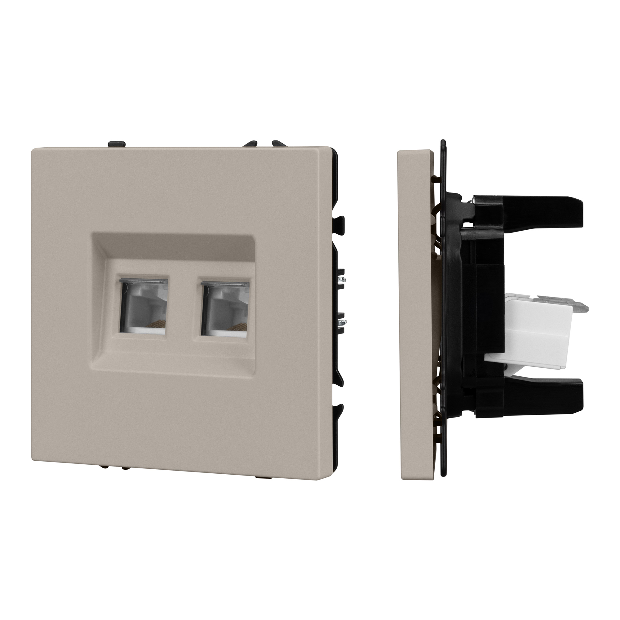 Механизм компьютерной розетки на 2 поста 6-й категории. Цвет - кашемир, с Soft-Touch поверхностью. Без фронтальной рамки. Уровень пылевлагозащиты IP20. Тип подключаемого разъема - RJ45. Розетка устанавливается в стандартный подрозетник круглого сечения диаметром 60мм. Габаритные размеры: длина 71 мм, ширина 71 мм, высота 42 мм. Гарантийный срок 10 лет.