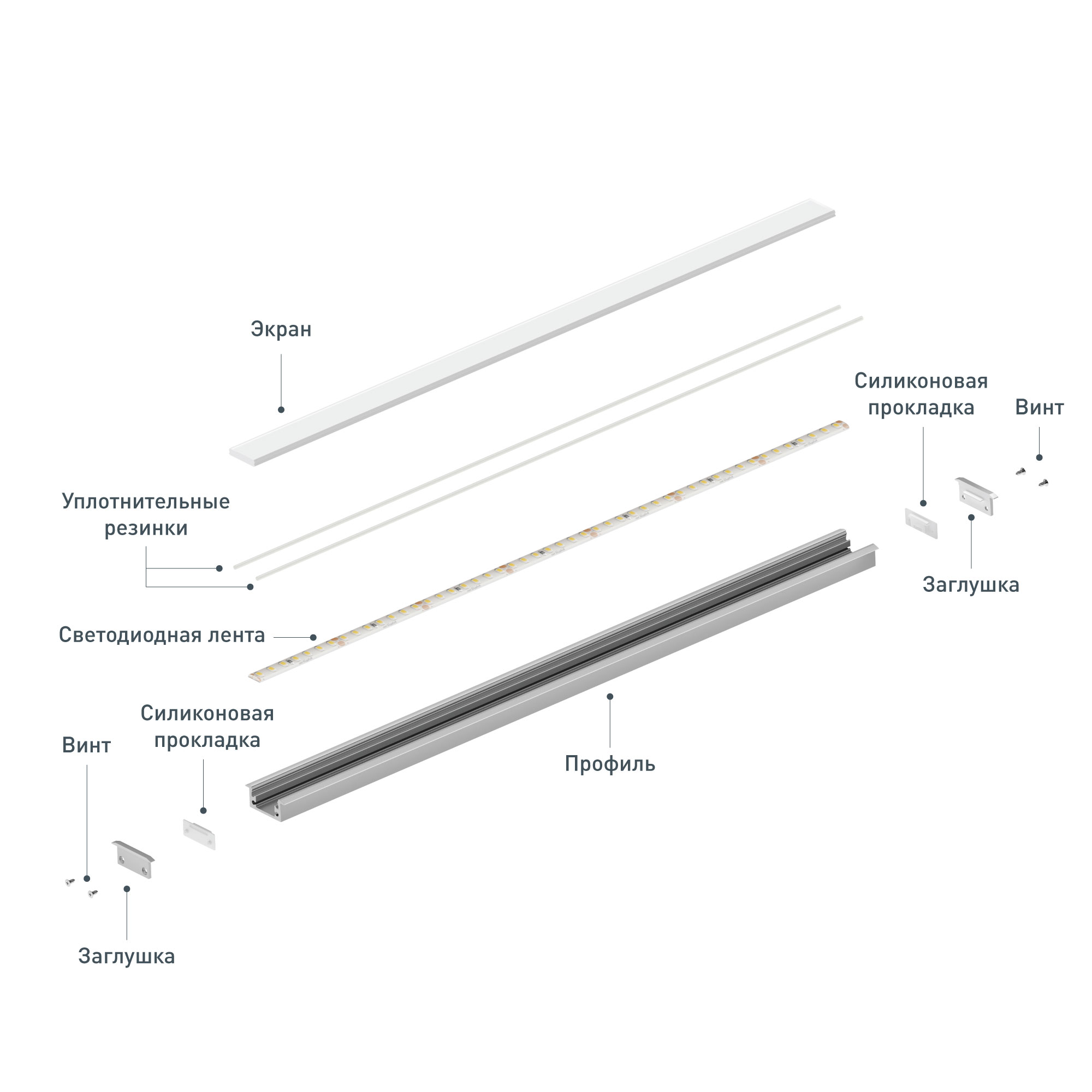Алюминиевый анодированный профиль с фланцем. Возможность герметизации до IP65 (при использовании аксессуаров и силиконового клея для фиксации экрана и заглушек), IK10 (08-10). Габаритные размеры (L×W×H): 2000x26,8x11 мм. Ширина площадки для ленты 12,2 мм. Заглушки и другие аксессуары приобретаются отдельно. Цена за 1 метр.