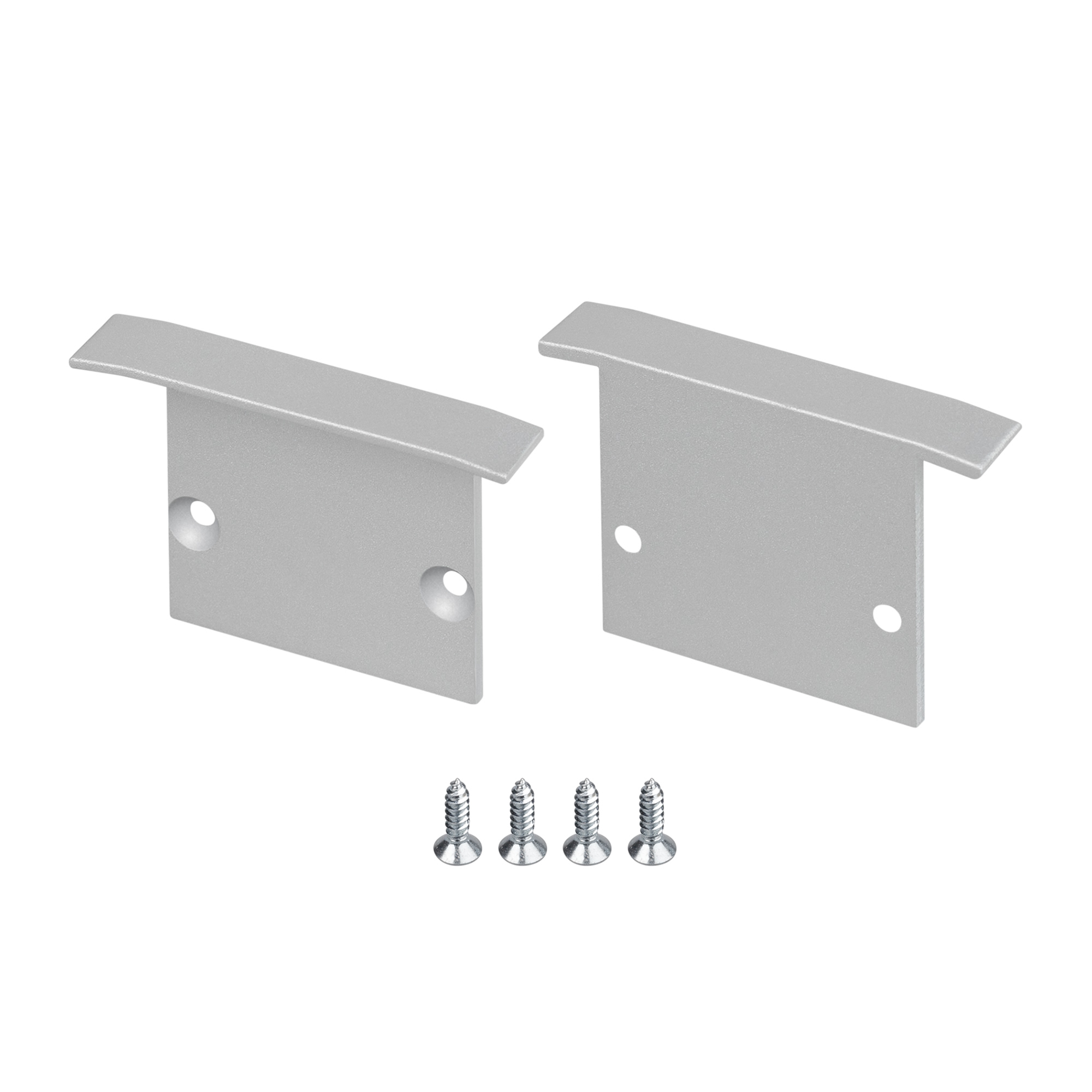 Глухие заглушки (2 шт.) серебристого цвета для профиля LINIA25-F. Придают аккуратный и законченный вид светильнику, а также защищают светодиодную ленту от внешних факторов (грязи, пыли, механических повреждений и прочего), что продлевает срок её службы.