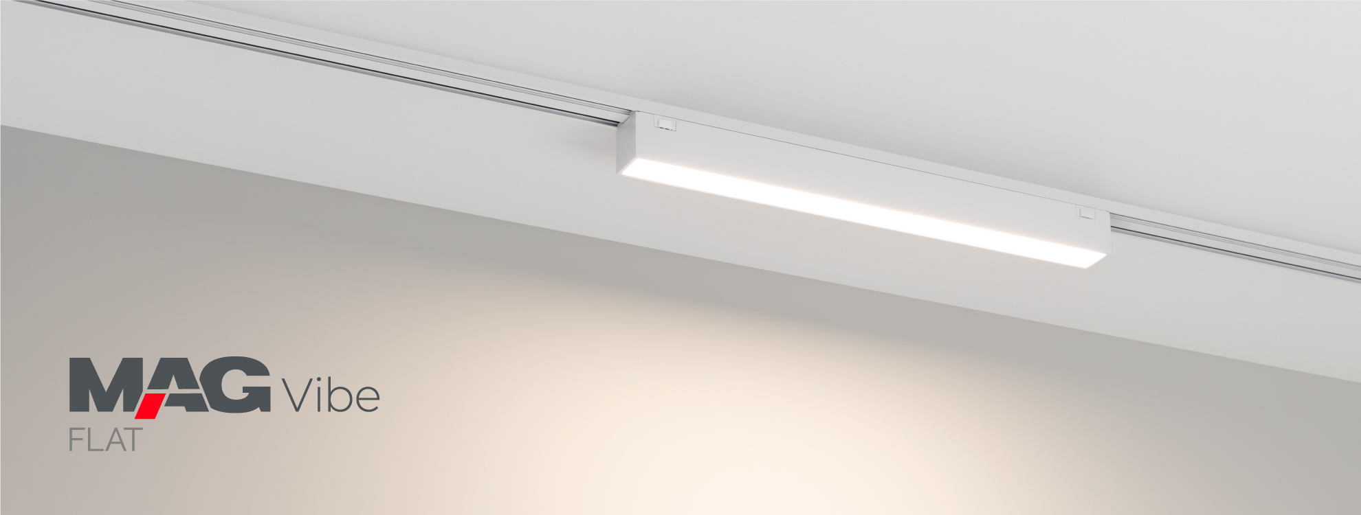 Линейные трековые светильники FLAT для магнитной системы MAG VIBE используются при организации общего освещения — отменная световая эффективность и высокий индекс цветопередачи (CRI>90) обеспечивают яркий, комфортный, качественный свет, точно передающий оттенки окружающих предметов. Минималистичные светильники легко впишутся в жилые, офисные, коммерческие пространства.