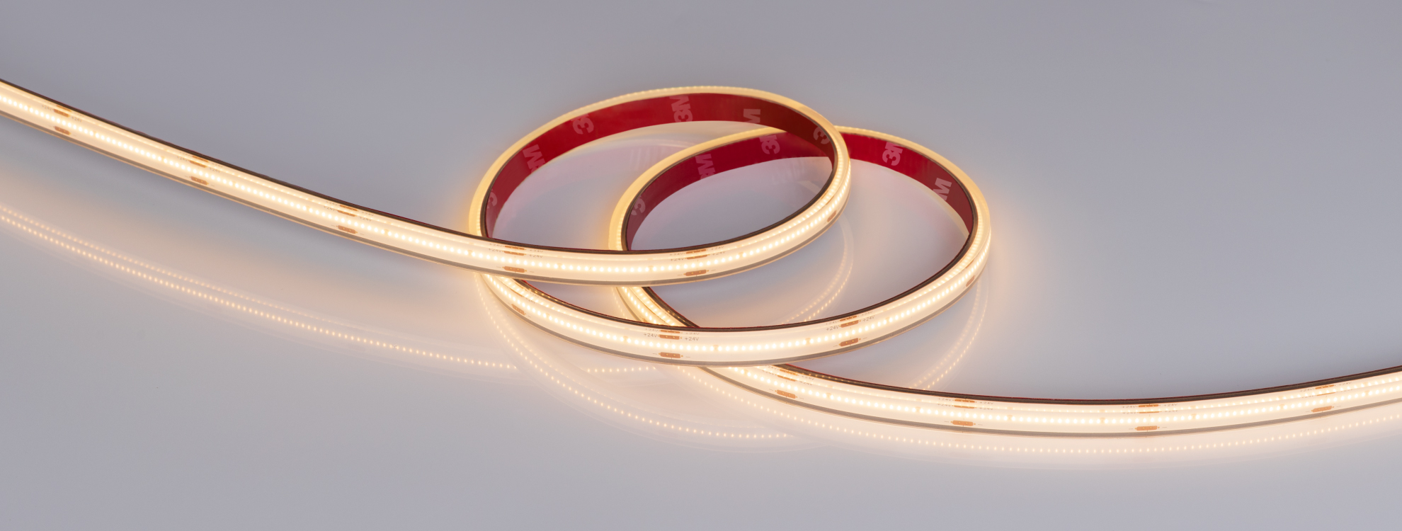 Равномерное свечение Благодаря светодиодам CSP лента образует равномерное свечение без видимых точек светодиодов.