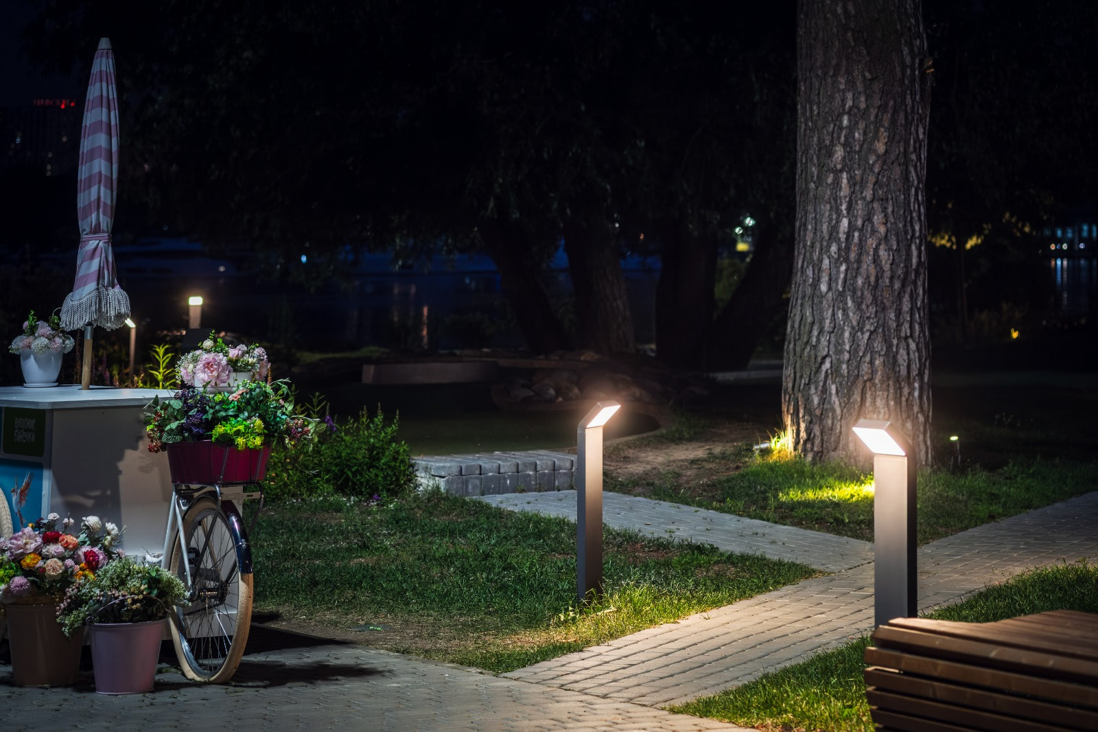 Помимо внешней эстетики, ландшафтное освещение — это про безопасность и удобство прогулок в темное время.