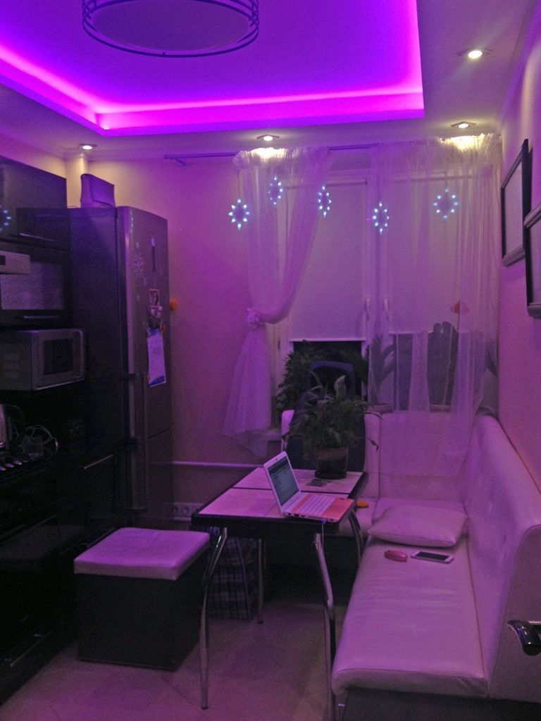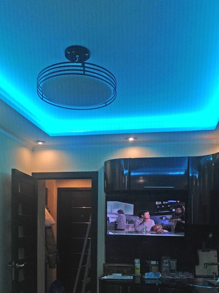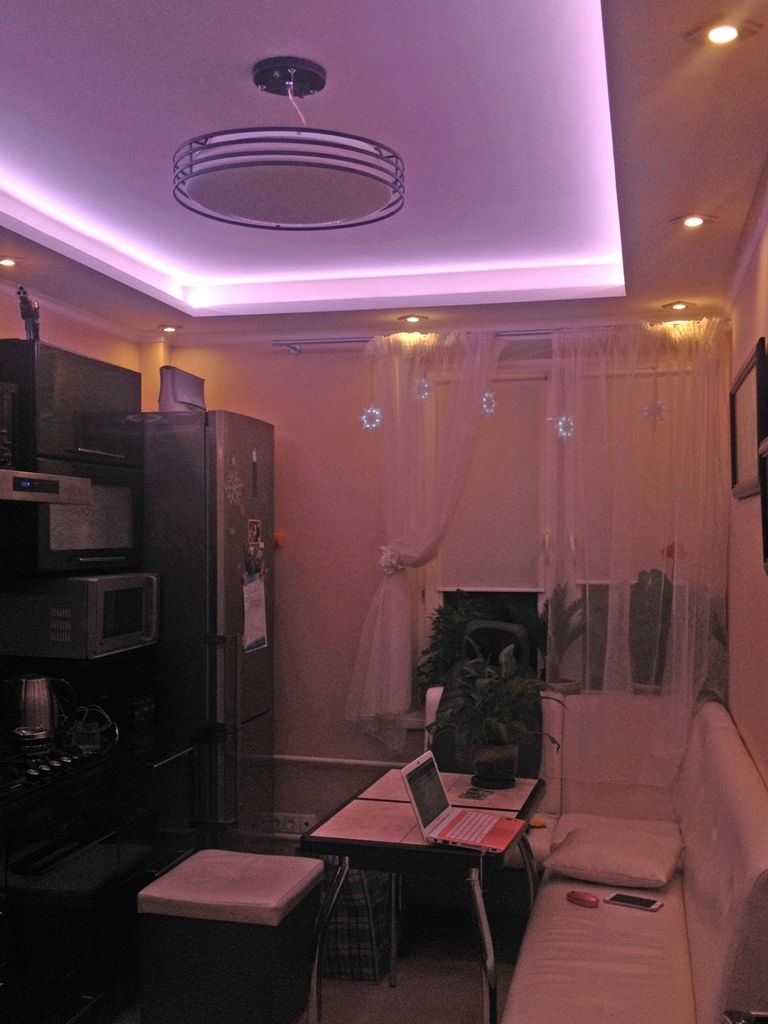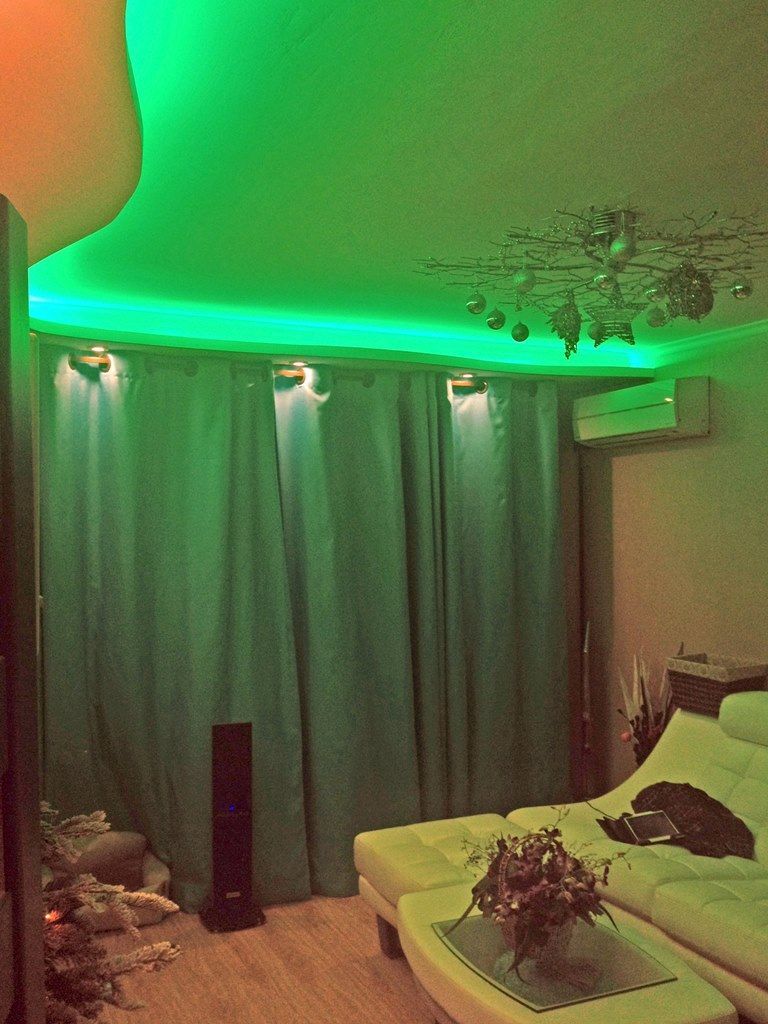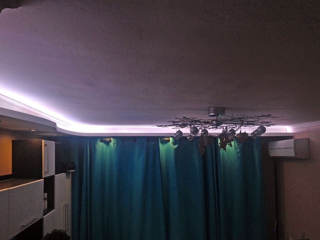 Декоративная закарнизная подсветка в квартире добавит новые нотки в интерьер. Применение многоцветной светодиодной ленты arlight® и RGB контроллера arlight® дает возможность добавить новые краски и подстроить обстановку под настроение.