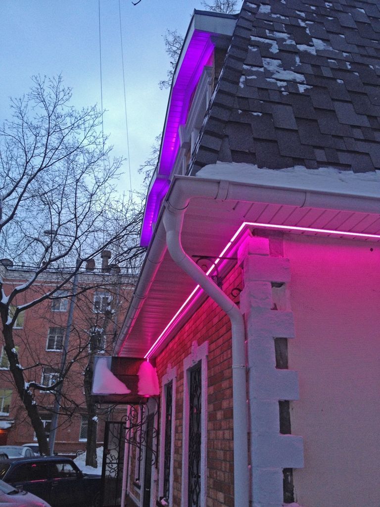 Все чаще и чаще проходя по улицам городов можно встретить освещенные фасады как отдельных зданий, так и целых кварталов. Применение светодиодного оборудования для декоративной архитектурной подсветки открыло новые возможности в данном виде освещения за счет низкого энергопотребления, компактности оборудования и широкой цвето-световой гаммы RGB LED технологии. Подсветка была выполнена с применением светодиодного оборудования arlight®.