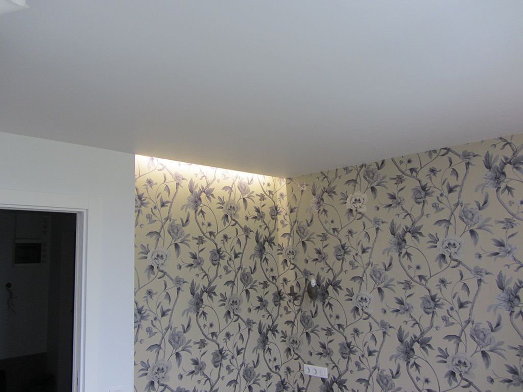 В данном проекте освещение на основе светящихся потолков было применено в ванной комнате, прихожей и коридоре. А в других помещениях была организована куда более простая в реализации декоративная подсветка потолочных ниш в гипсокартоне.